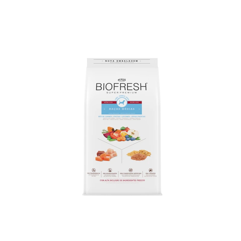 Biofresh Senior Razas medianas es un alimento Super Premium completo y equilibrado que se destaca para elevar la nutrición de los perros mayores de razas medianas a su más alto nivel. Biofresh Super Premium Senior ayuda a preservar características muy importantes de la juventud, tales como los músculos fuertes, la agilidad mental y la salud de los aparatos digestivo, renal y cardíaco. Biofresh es innovador y diferente, porque esta formulado con una alta inclusión de ingredientes realmente frescos, directamente de la naturaleza. La tecnología Biofresh garantiza la conservación de este alimento de forma 100% natural y segura, sin conservantes artificiales añadidos.