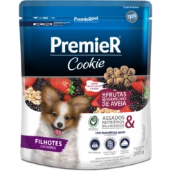 Para retribuir de forma divertida el amor incondicional y la amistad que los perros nos ofrecen, PremieRpet creó Premier Cookie, una galleta que reúne calidad, salud y sabor y es diferente de los productos actualmente disponibles en el mercado. Premier Cookie es horneado, saludable y nutritivo. Tiene ingredientes cuidadosamente seleccionados y satisfacción comprobada. PremieR Cookie Cachorros Frutos Rojos y Avena es indicado para cachorros, y tiene todos los beneficios de la línea PremieR Cookies sumados a la exclusiva combinación de frutilla, mora y avena — ingredientes saludables y que dan todavía más sabor a las galletas.